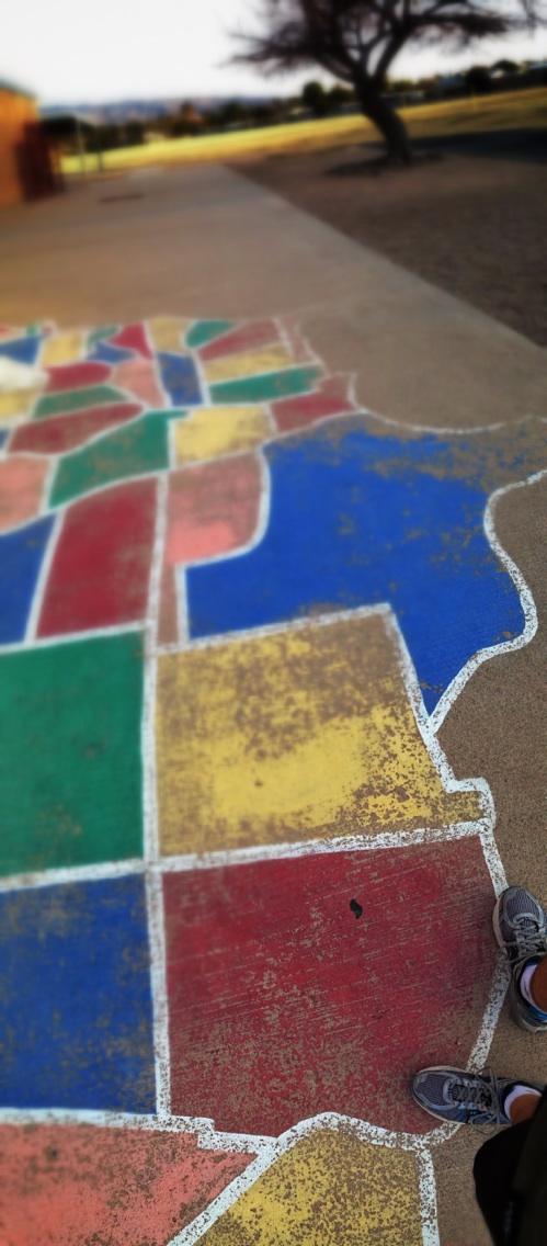 A few afternoons ago, I took my iPhone with me on an after-work run; I wanted to get the hang of the panorama-feature. (Yes, I 'succumbed to the siren-song,' as a friend described it--I got the iPhone5.) And I found myself standing on a map on the playground of the neighborhood elementary school: