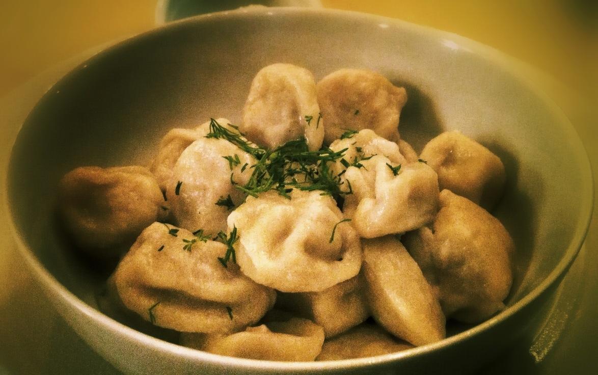Pelmeni are Siberian dumplings. (These were lamb-filled.)