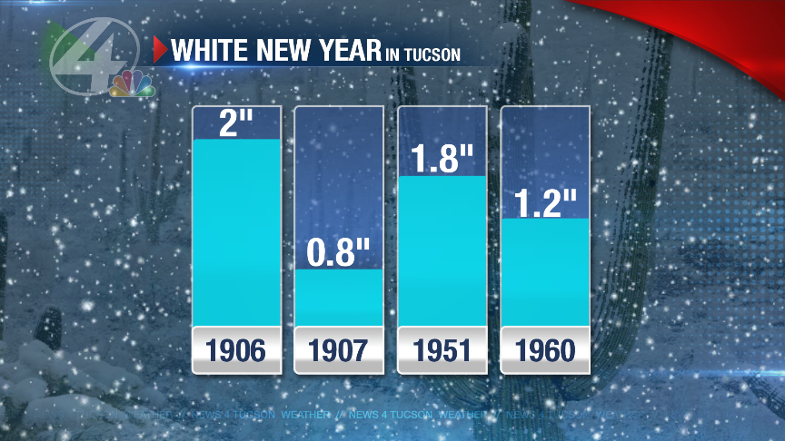 ...and then all night the rain came down...which just before midnight turned into snow! And it kept snowing through much of the early morning hours of January 1st...which means that Tucson woke up to a rare snow-covered New Year's Day: